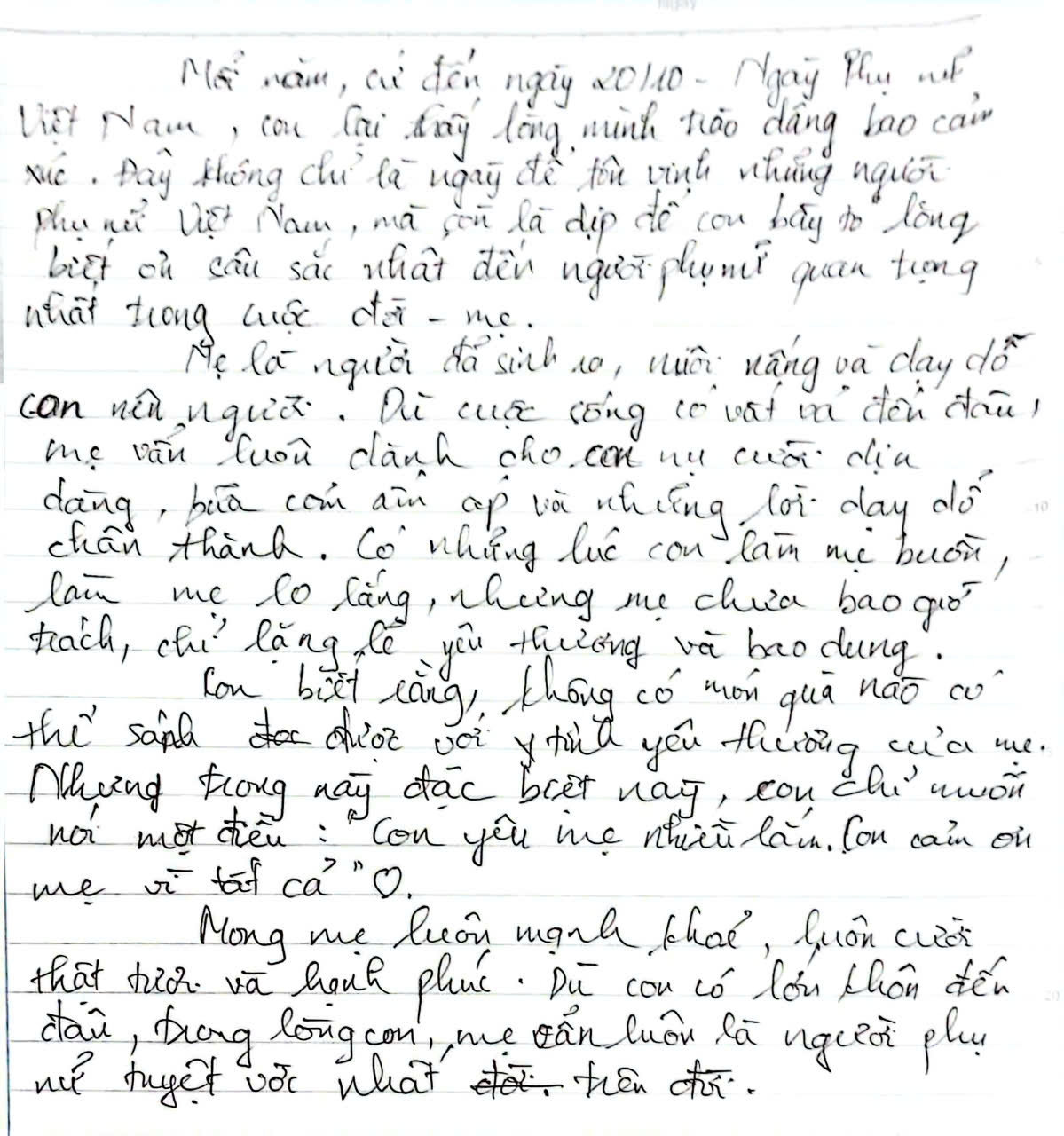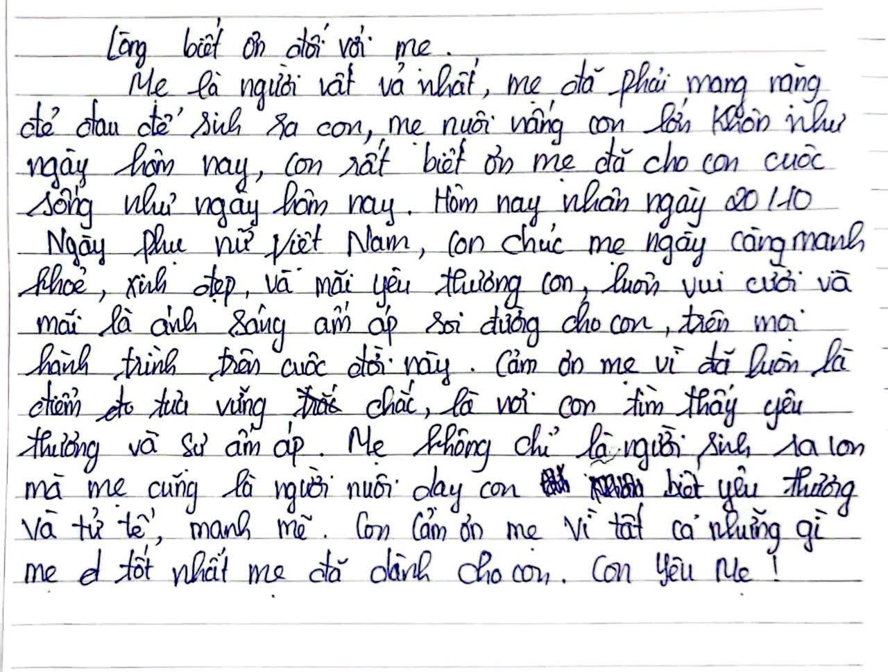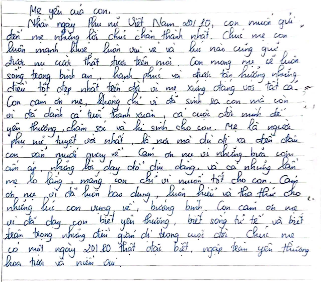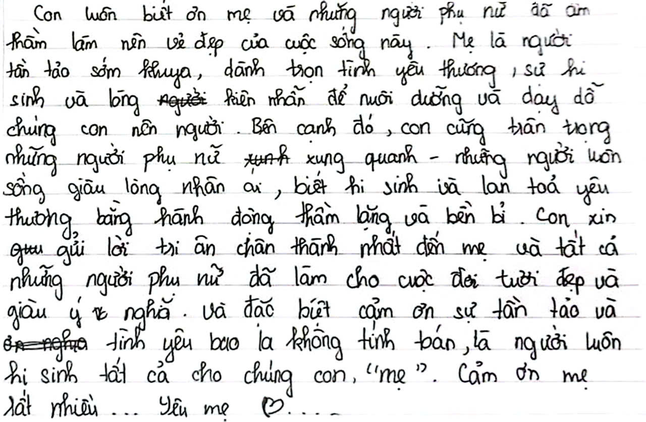 Kết thúc chương trình, nhiều em học sinh đã mạnh dạn viết những lời chúc, lời nhắn gửi tới mẹ, tới những người phụ nữ thân thương. Có em đã rơi nước mắt khi lần đầu nói ra những điều tưởng chừng khó nói: “Con yêu mẹ nhiều lắm… chỉ là con chưa biết cách để thể hiện.”