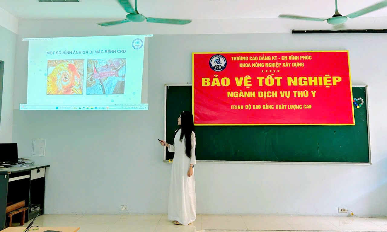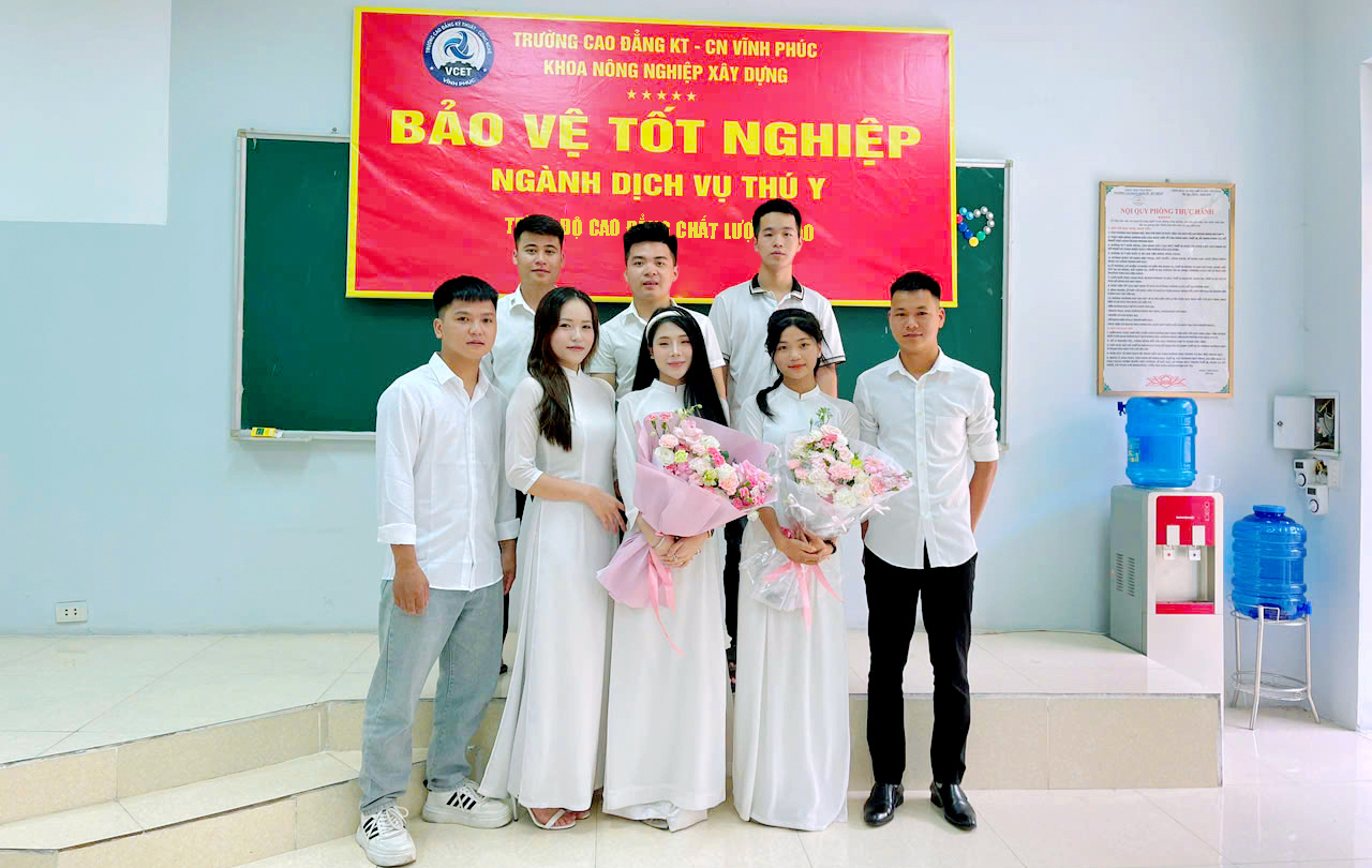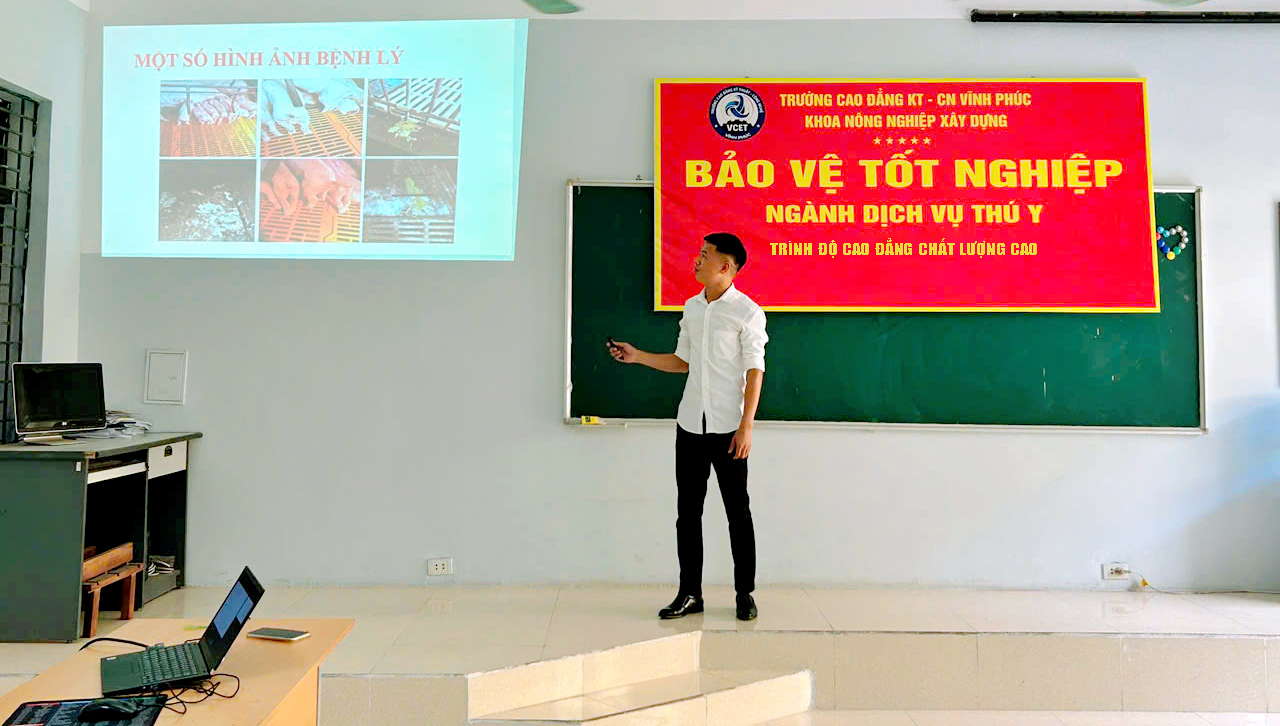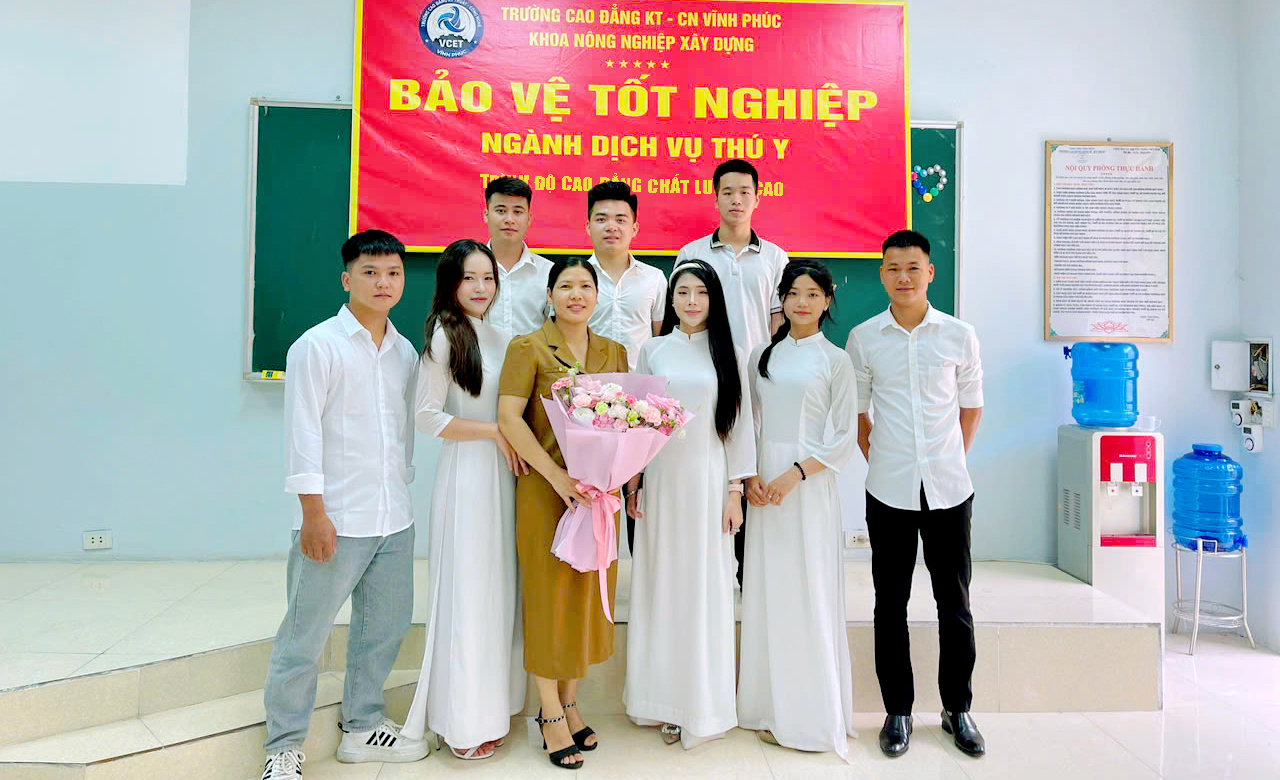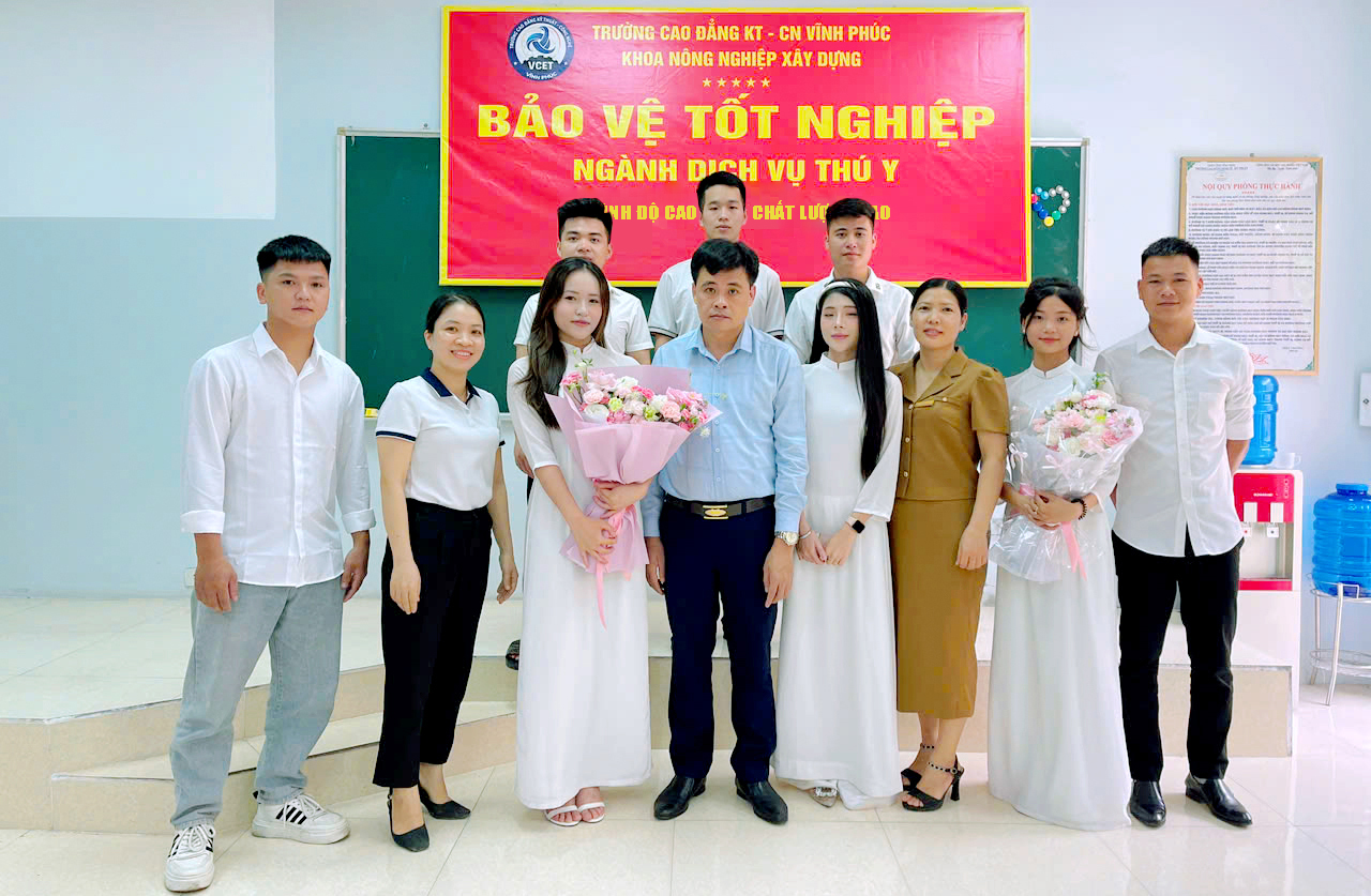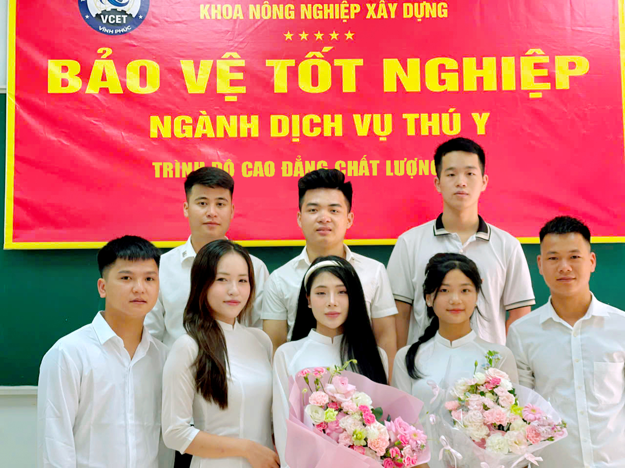 Sáng ngày 27/06/2025, tại Trường Cao đẳng Kỹ thuật – Công nghệ Vĩnh Phúc (VCET), Khoa Nông nghiệp – Xây dựng đã trang trọng tổ chức buổi bảo vệ Báo cáo Thực tập tốt nghiệp cho sinh viên lớp Cao đẳng Dịch vụ Thú y – Chất lượng cao K14, niên khóa 2022–2025.