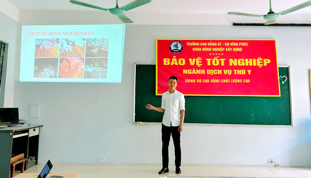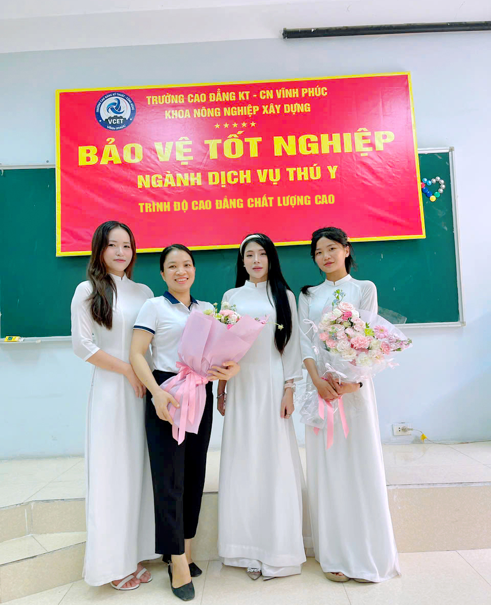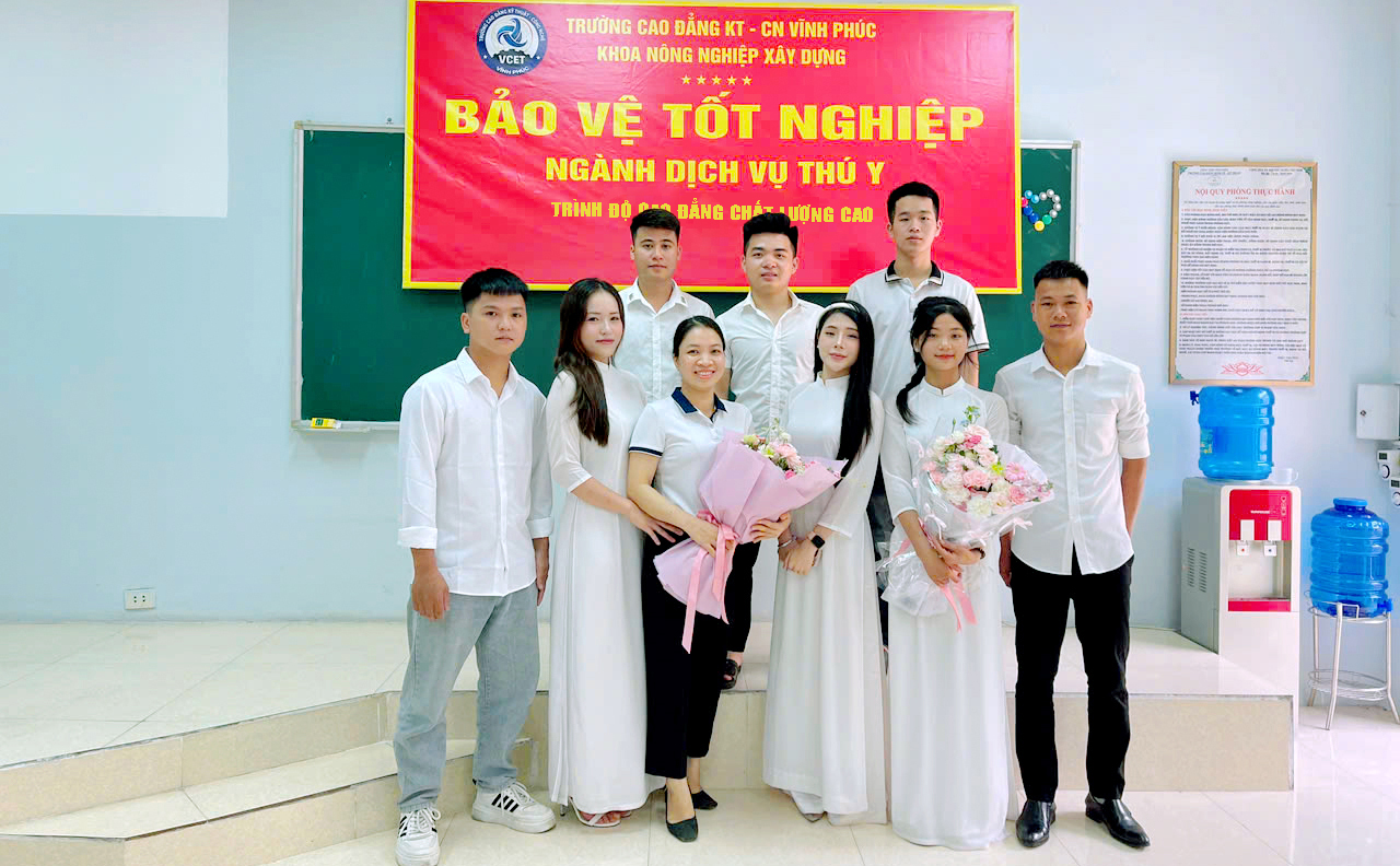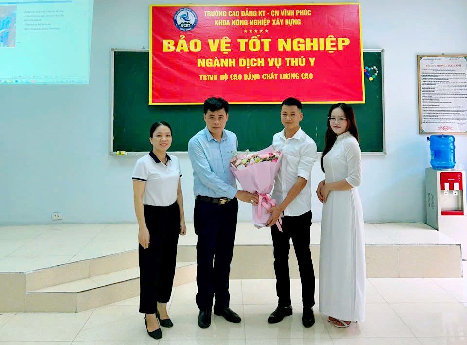 Nhà trường và khoa ghi nhận, biểu dương tinh thần học tập nghiêm túc và bản lĩnh thể hiện đầy thuyết phục của các em trong buổi bảo vệ. Chúc các em tiếp tục giữ vững nhiệt huyết, đạo đức nghề nghiệp và tay nghề vững chắc để tự tin bước vào hành trình mới – hành trình của những kỹ thuật viên thú y tận tâm, chuyên nghiệp và giàu trách nhiệm với cộng đồng chăn nuôi hiện đại.